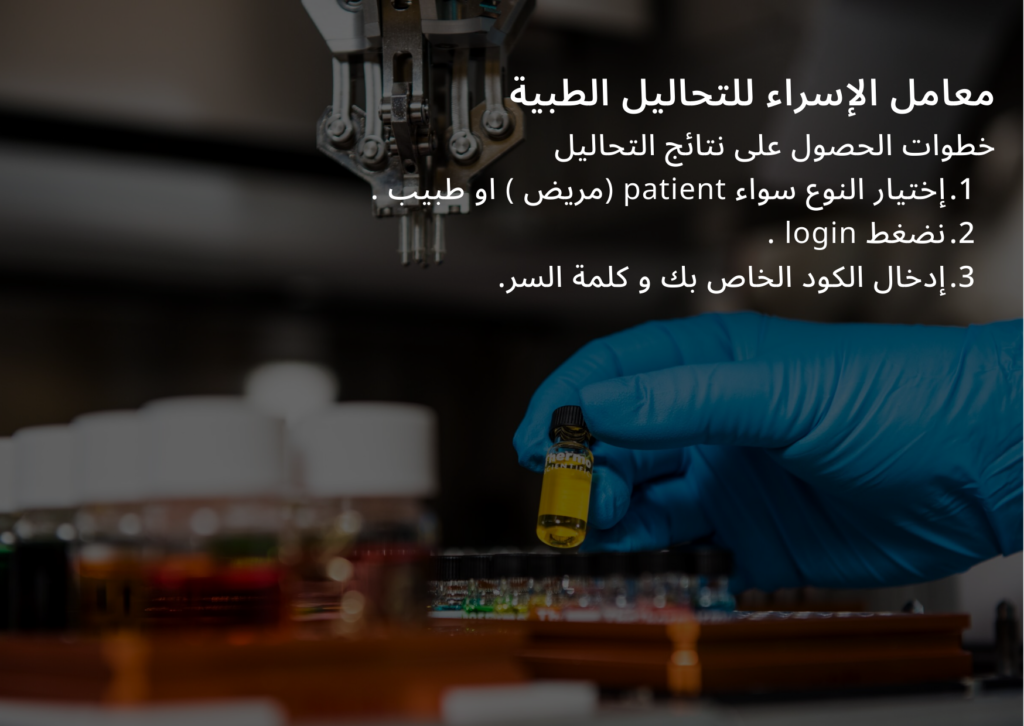 القيام بالتحاليل في المنزل أو مقر العمل، في الوقت والمكان المناسبين لك. أعلى وأدق مستوى من التدريب للمختصين بأخذ عينة التحاليل من المنزل. هناك بروتوكول خاص لطريقة تصرف مندوب المعمل من لحظة دخول منزل المريض إلى طريقة التخلص من النفايات الخطرة وتوصيل العينة سالمة إلى المعمل للفحص